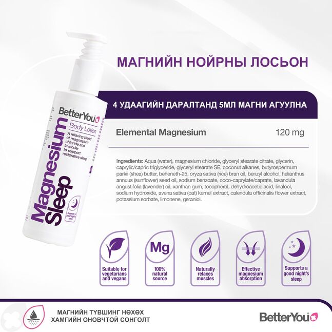 Нойрны лосьон нь ядарсан булчинг суллаж, мэдрэхүйг намдаан илүү гүн, урт удаан нойртой унтахад туслах зорилготой бүтээгдэхүүн юм.